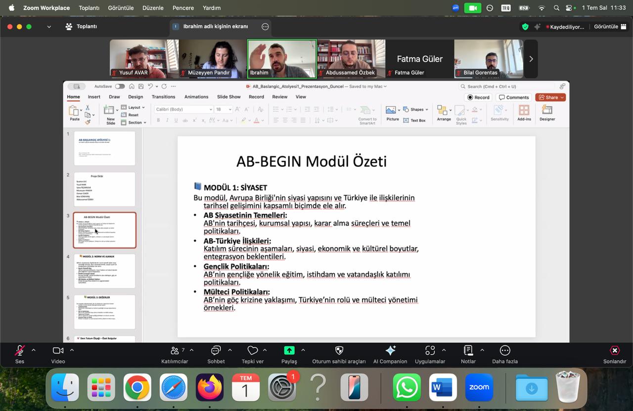 Daha sonra Doç. Dr. İbrahim Efe, Jean Monnet Modülü serüvenine nasıl başladıklarını, proje ekibini, proje detaylarını ve proje kapsamında verilen dersleri alan öğrencilerin geri dönüşlerini katılımcılarla paylaştı. Kilis şehrinin göçle olan ilişkisine değinerek, projede göç konusuna da yer verdiklerini belirtti. Projenin siyaset, normlar ve değerler modülünü detaylı şekilde açıkladı ve böylelikle ilk oturum, soru-cevap bölümüyle sona erdi.